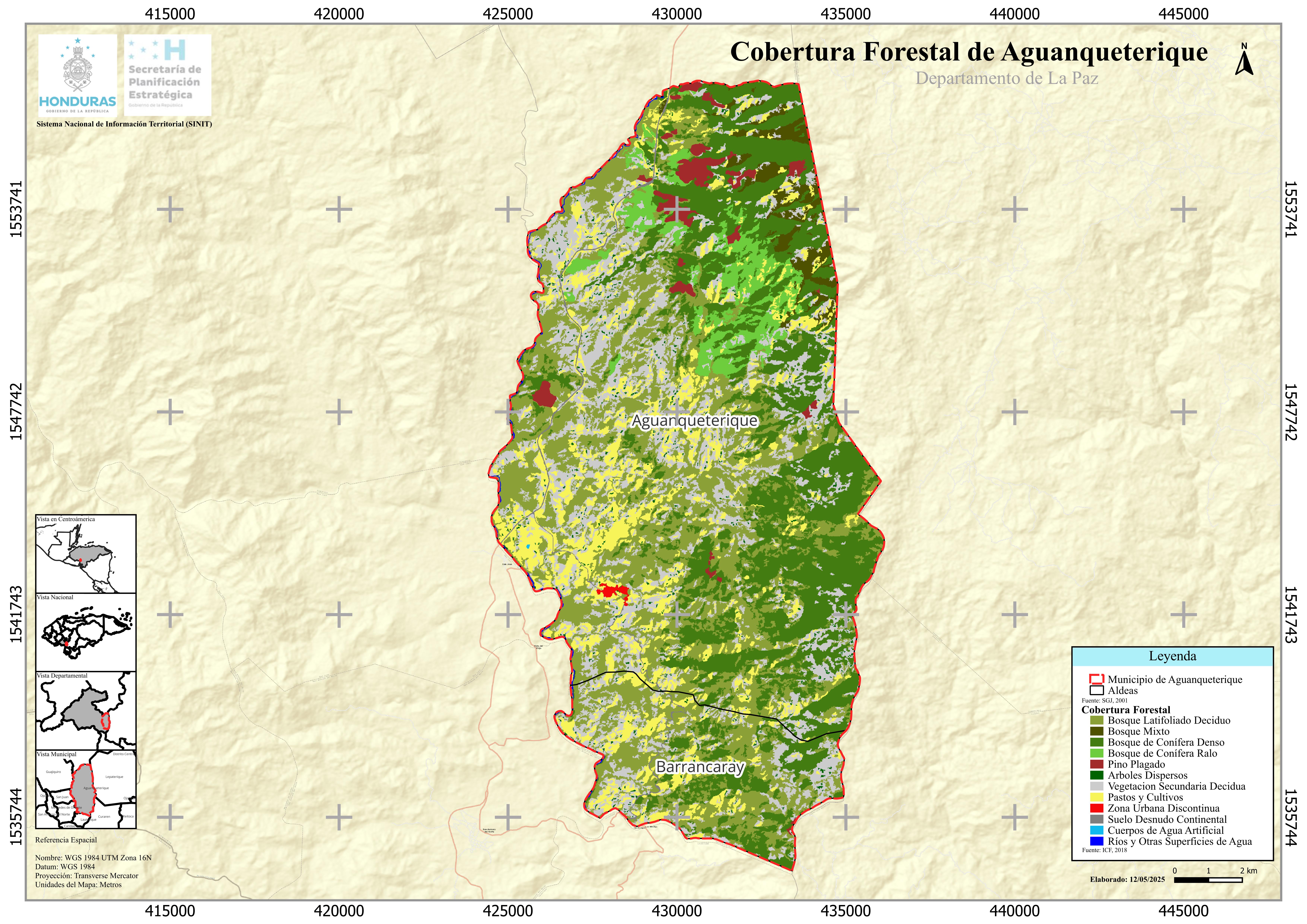 Mapa de Cobertura Forestal de Aguanqueterique