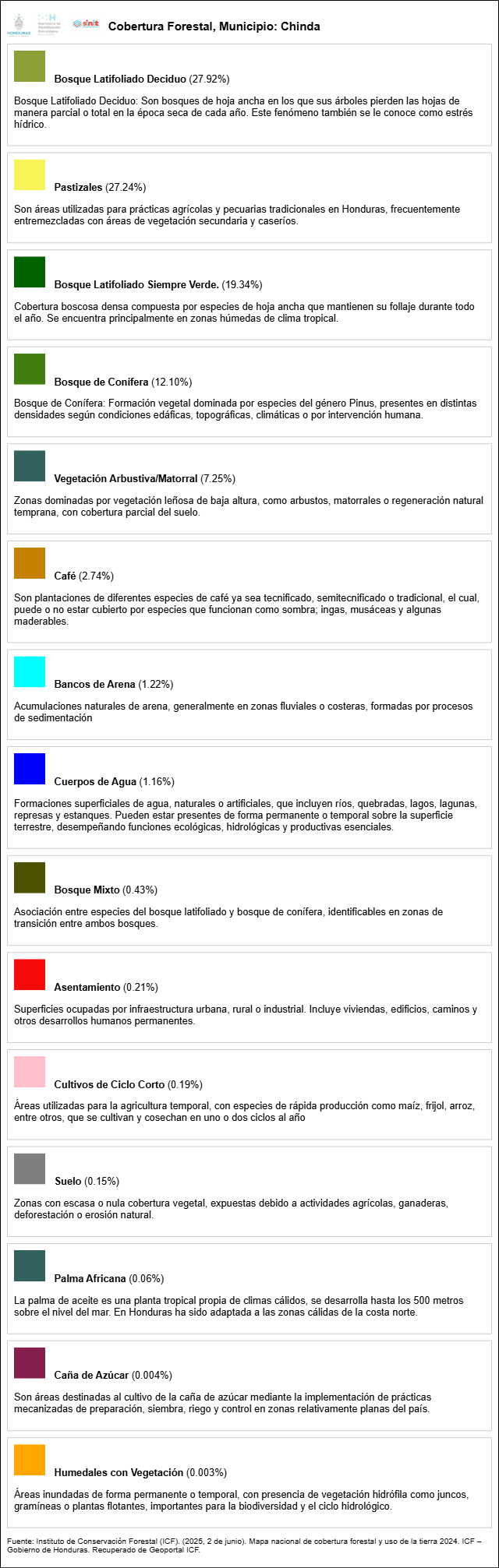 Infografía Cobertura Forestal de Municipio Chinda