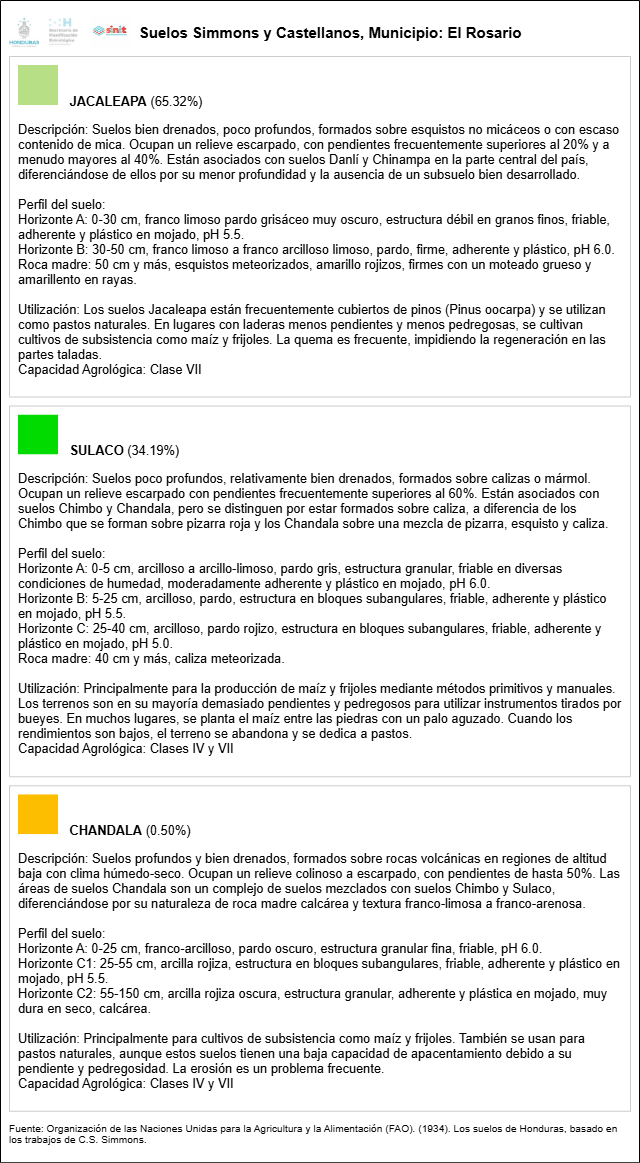 Mapa Suelos Simmons y Castellanos de El Rosario