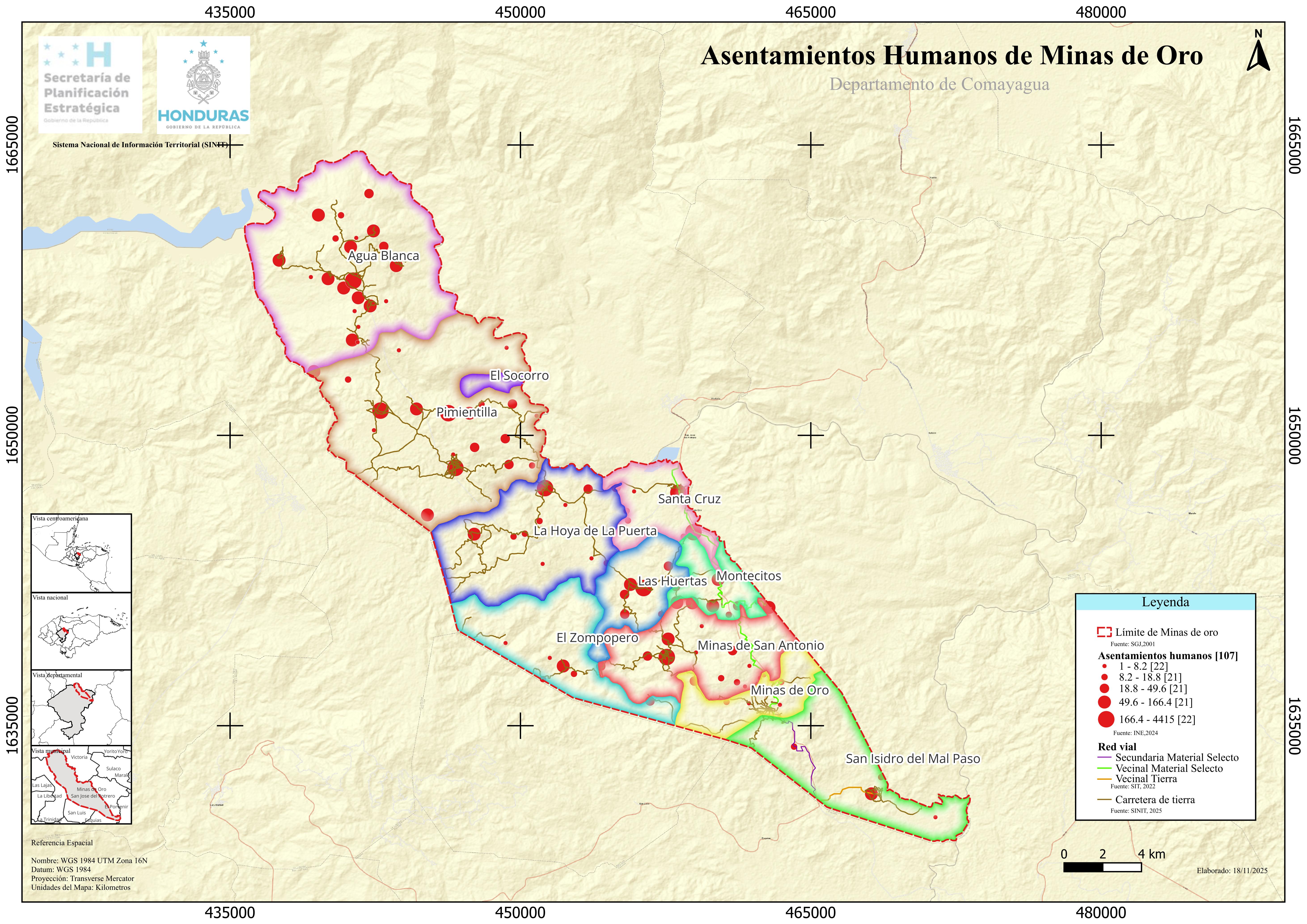 Mapa Asentamientos Humanos de Minas de Oro