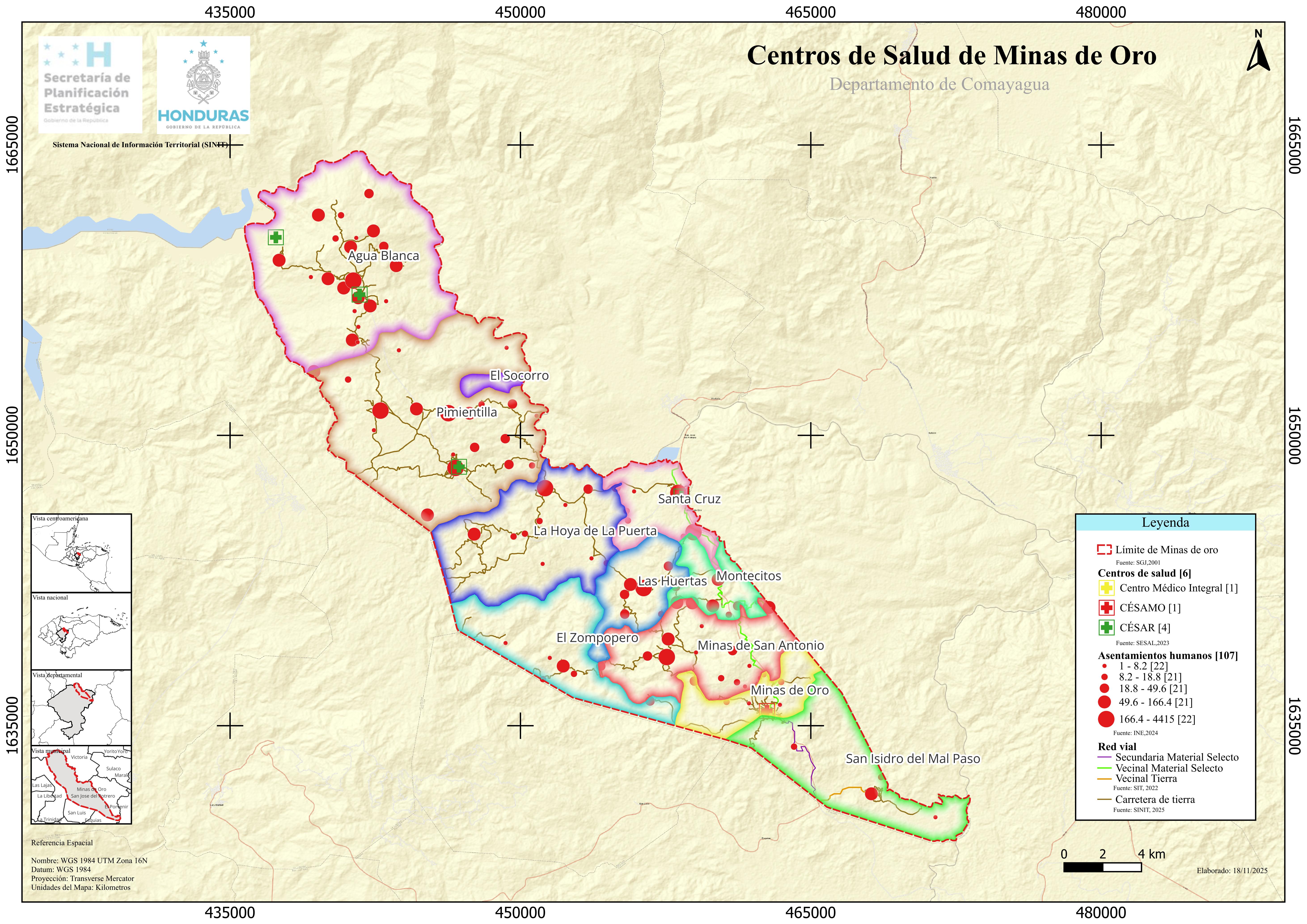 Mapa Centros de Salud de Minas de Oro