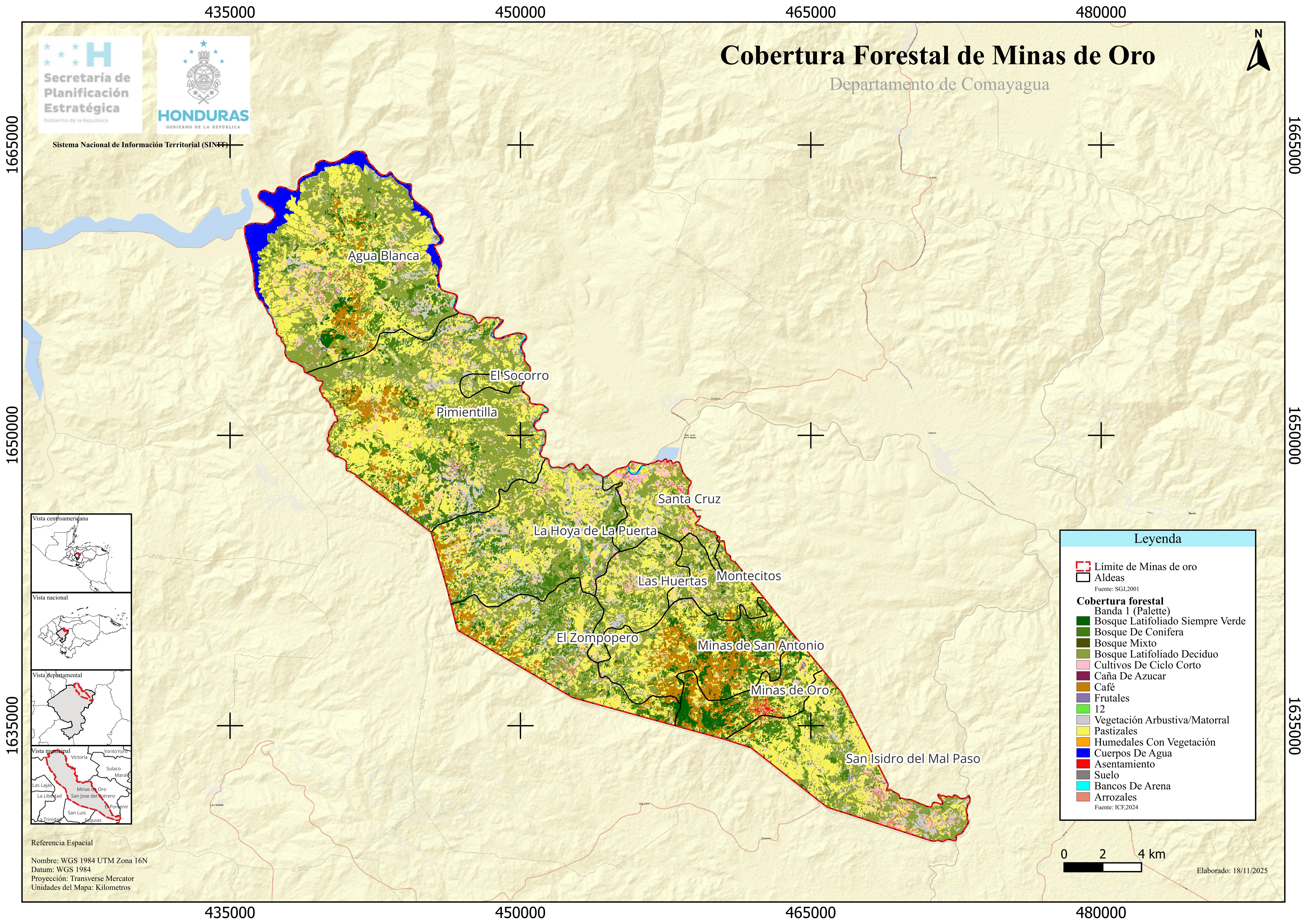 Mapa Cobertura Forestal de Minas de Oro
