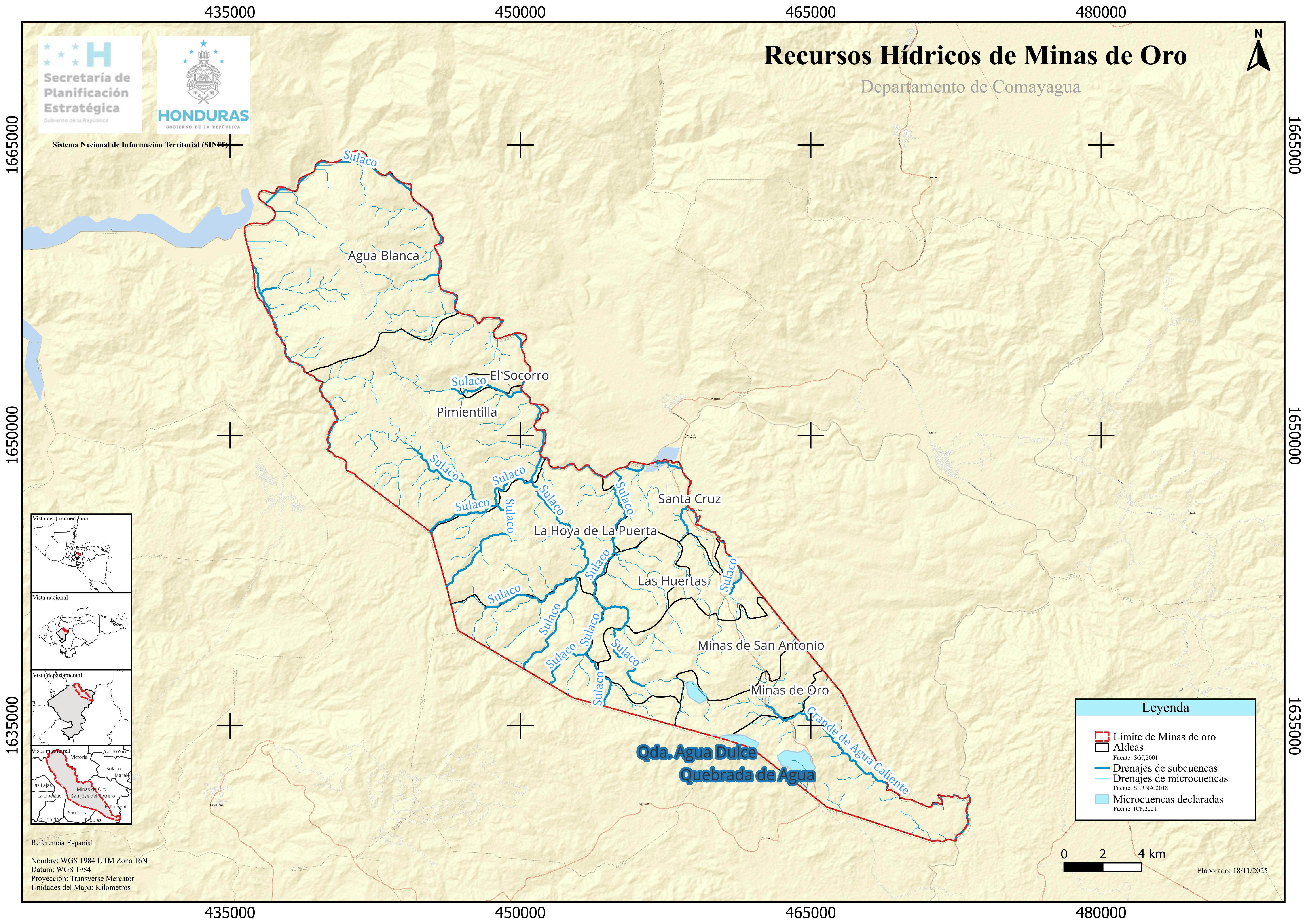 Mapa Recursos Hídricos de Minas de Oro