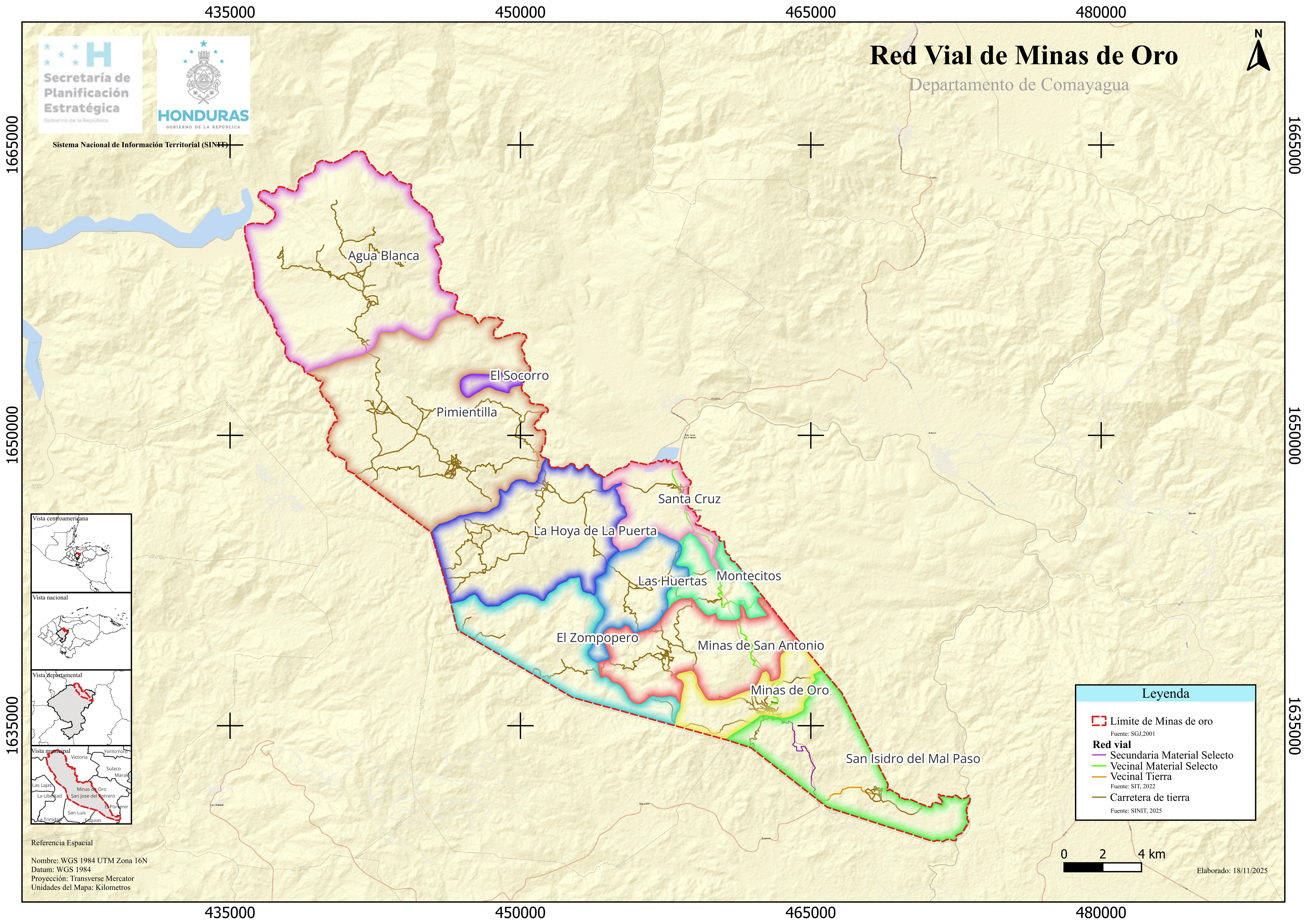Mapa Red Vial de Minas de Oro