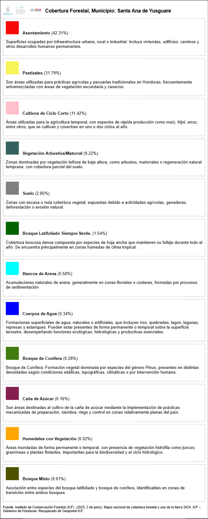 Infografia de Cobertura Forestal municipio Santa Ana de Yusguare